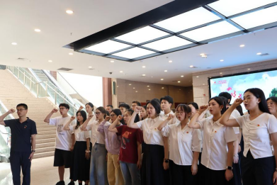 全体新发展党员首先来到红岩革命纪念馆,面向党旗庄严宣誓。