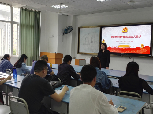 4月12日下午15:00时,艺术设计学院教工党支部在5304教室开展了书记讲课活动,学习习近平新时代中国特色社会主义思想,贯彻十九大报告精神。会议由党支部书记侯典芬主讲。除个别同志有课请假外,其余党员都参加了此次党课。