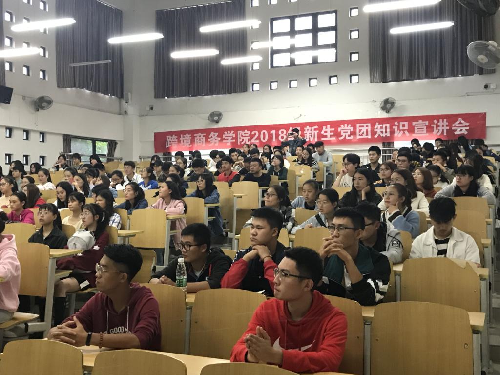 为引导学生深入学习贯彻党的“十九大”精神,加深2018级全体新生对党基本理论知识的了解,2018年9月27日下午,跨境商务学院举办了三场次以“当代中国大学生与中国共产党”为主题的党团知识宣讲会,学院党总支组织委员许雪梅做宣讲。