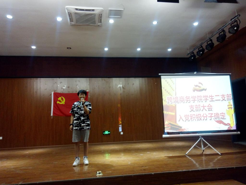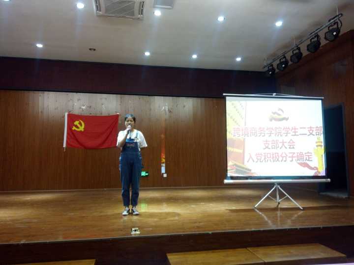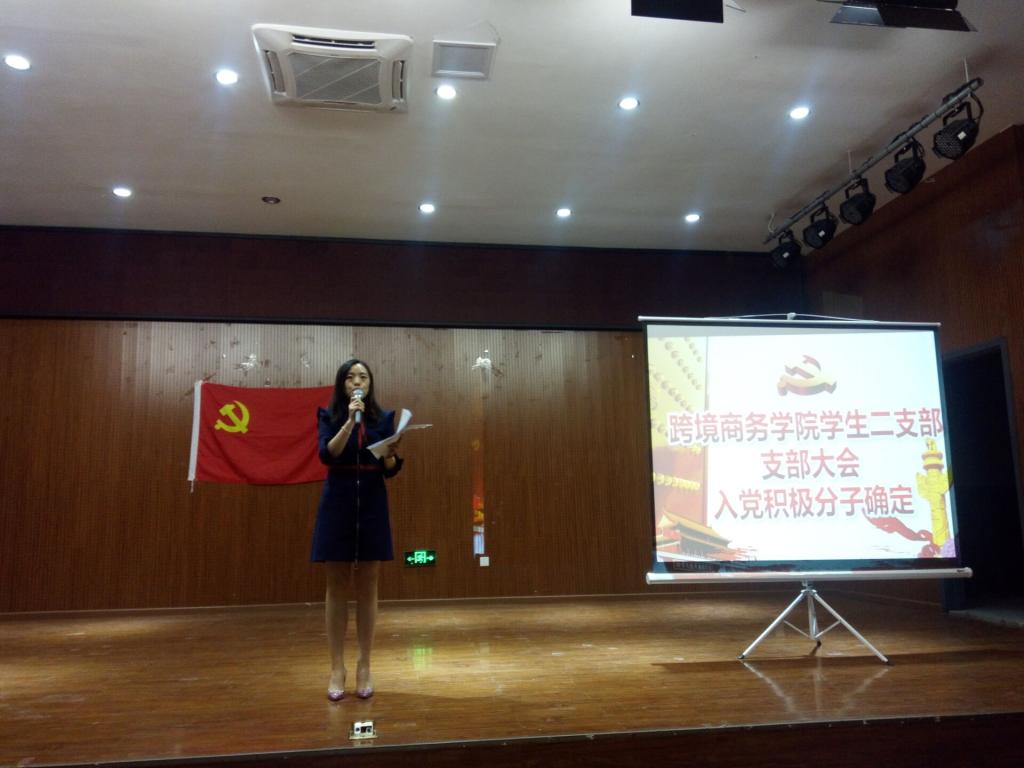 2019年4月26日,跨境商务学院学生二支部在铜梁校区学术报告厅召开支部会议,分三批次讨论并确定入党积极分子人选。学生二支部书记王玥极同志主持会议,学院党总支专职组织员帅爱军同志出席会议,支部全体党员共同参与会议讨论。