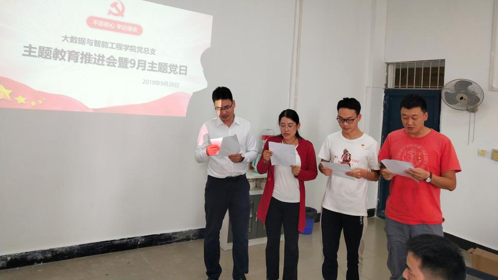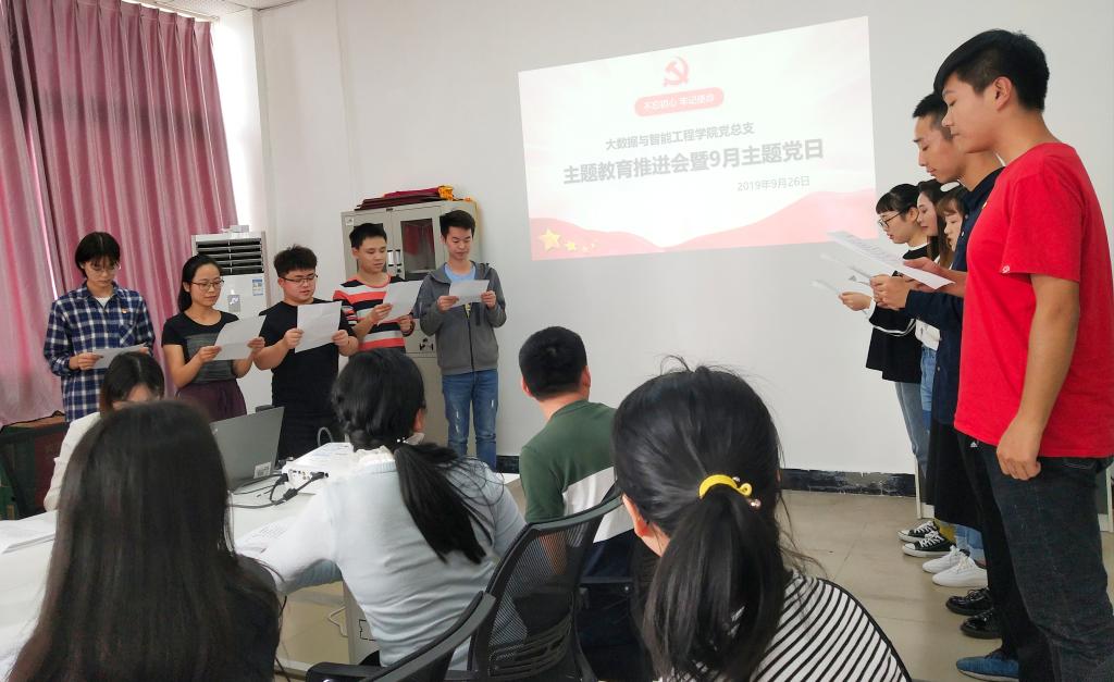 2019年9月26日,大数据与智能工程学院党总支按照学校党委总体部署,在合川校区3407会议室组织开展了“不忘初心、牢记使命”主题教育推进会暨9月主题党日。