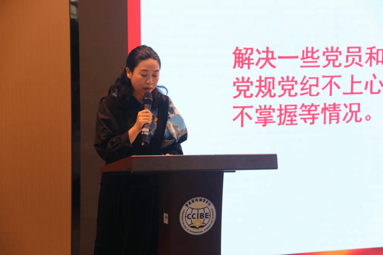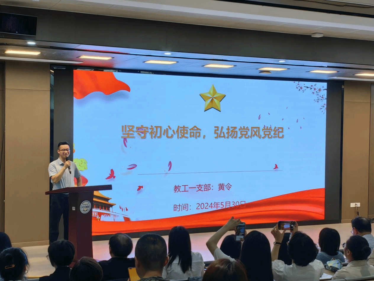 黄大年式教师支部书记任晓珠以一只因贪吃而丧命的老鼠为引子,以实际案例为镜,强调了党员在任何岗位、任何时候都要对党纪党规保持敬畏之心,并通过练好“三功”(思想上的“内功”、廉洁自律的“防功”、划清公与私的“硬功”)来坚守底线。教工一支部书记黄令以“坚守初心使命,弘扬党风党纪”为主题,深入阐述了初心使命的重要性,以及如何在工作中坚守党风党纪,做廉洁从政的表率。教工二支部书记杨佳奇以其深入浅出的演讲,阐述了如何扣好党规党纪的“第一粒扣子”。