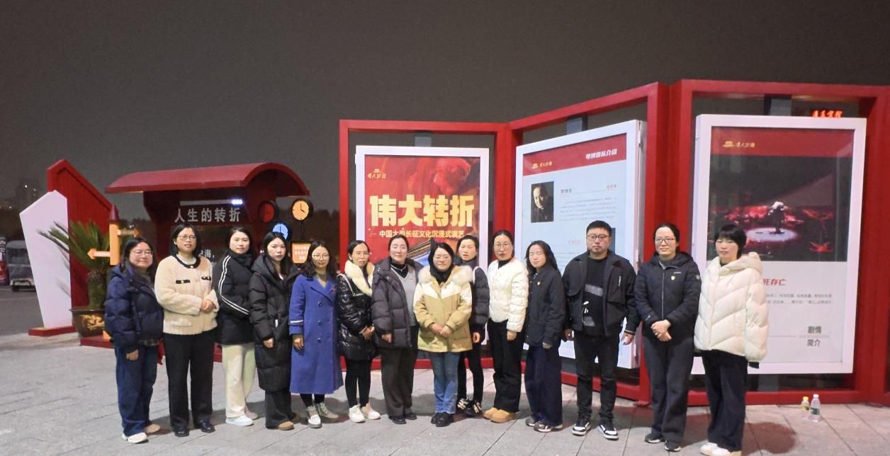 追寻足迹,沉浸研学悟真理。今年是遵义会议召开90周年,支部党员首先来到了遵义会议会址。在讲解员的带领下,大家在一件件珍贵的文物、一张张泛黄的历史照片前驻足凝视,深刻领悟到遵义会议作为党历史上“生死攸关的转折点”的伟大意义。随后,全体党员前往红军烈士陵园,在巍峨的纪念碑前肃立默哀,向革命先烈敬献鲜花,缅怀他们为革命事业立下的不朽功勋。随后,党支部特别安排观看了大型情景剧《伟大转折》。通过现代光影技术与舞台艺术的结合,党员们身临其境地感受了红军长征的艰难险阻与红军战士的英勇无畏。这种“沉浸式”的学习模式,不仅是一场视觉的震撼,更是一次灵魂的洗礼,让“坚定信念、实事求是、独立自主、敢闯新路”的遵义会议精神在每一位教师心中深深扎根。