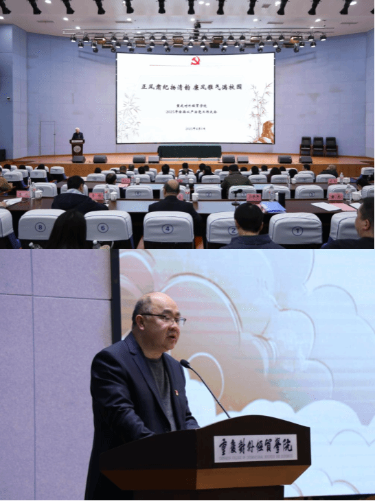 4月1日下午,以“正风肃纪扬清韵,廉韵雅气满校园”为主题的2025年全面从严治党工作大会在A校区9101学术报告厅召开。党委书记何大海参加会议并讲话,在家校领导、驻校理事、科级及以上干部、党支部书记和纪检委员参加会议。会议由党委副书记、校长孙泽平主持。