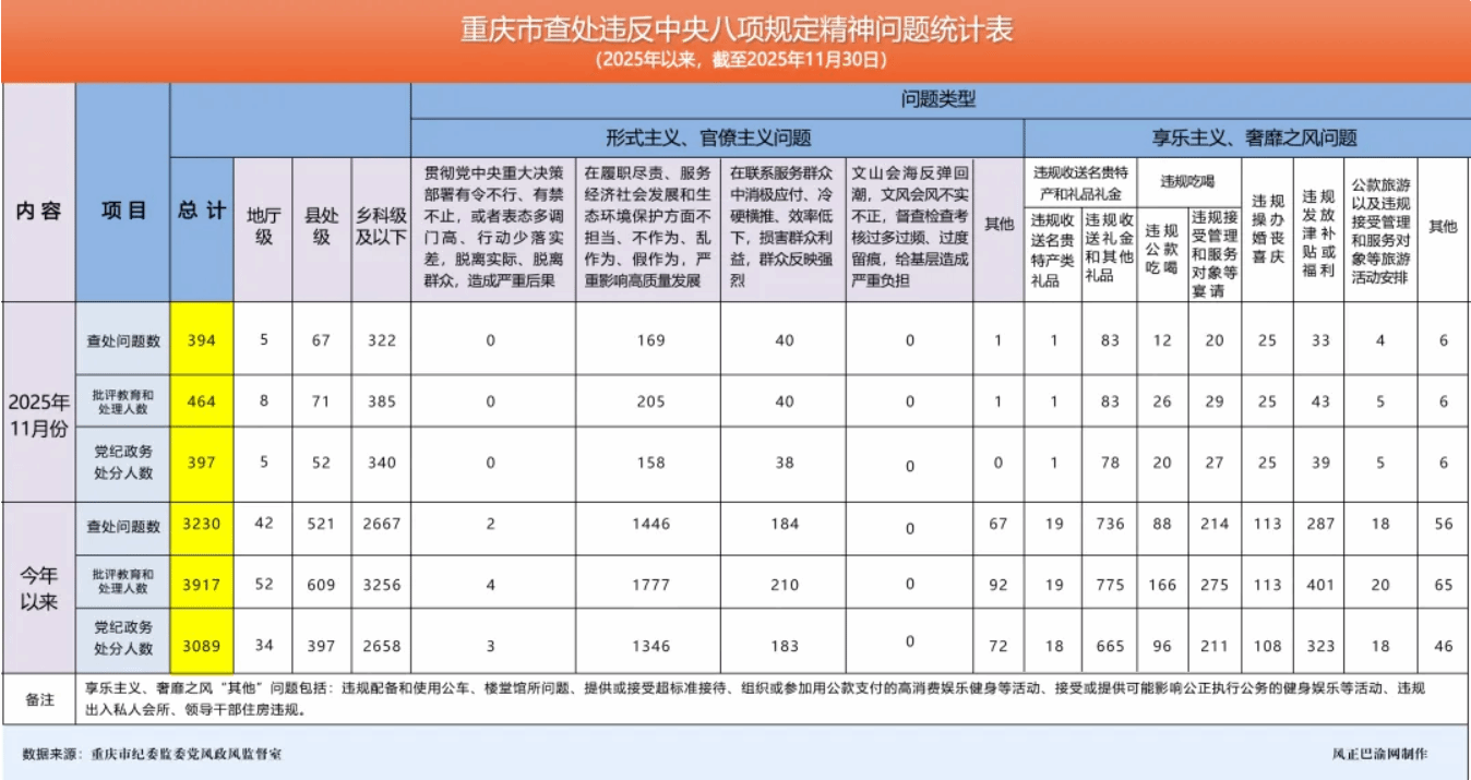 处分397人!2025年11月我市查处违反中央八项规定精神问题394起